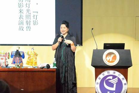 讲座伊始,庄晏红女士通过自我介绍拉进与同学的距离,接着侃侃而谈梳理起木偶戏的源流与演变,重点提及2006年“木偶表演”“木偶雕刻”双双列入中国首批“非物质文化遗产”的重要节点。还播放相关视频,让同学们快速建立对这门艺术的文化认知。