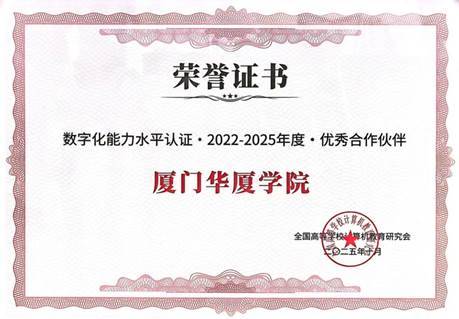 会议表彰了近年在数字教育方面成绩突出的院校和个人。厦门华厦学院荣获由全国高等学校计算机教育研究会颁发的“2022-2025数字化能力水平认证优秀合作伙伴”殊荣,同时我校陈婷婷和严一峰两位老师获“数字化能力水平认证全民数字素养提升优秀工作者”荣誉称号。