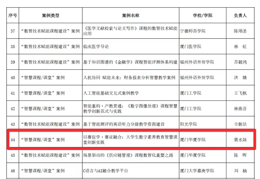 近日,福建省高校在线教育联盟公布2025年度智课优秀案例结果,我校申报的“以赛促学・赛证融合:大学生数字素养教育智慧课堂创新实践”案例荣获省级二等奖。这一荣誉是我校深化教学改革、探索数字时代人才培养新路径的又一重要里程碑,标志着我校在数字素养教育领域的创新探索获得了权威认可。