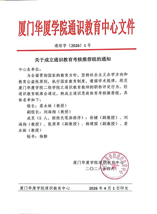 关于成立通识教育考核推荐组的通知