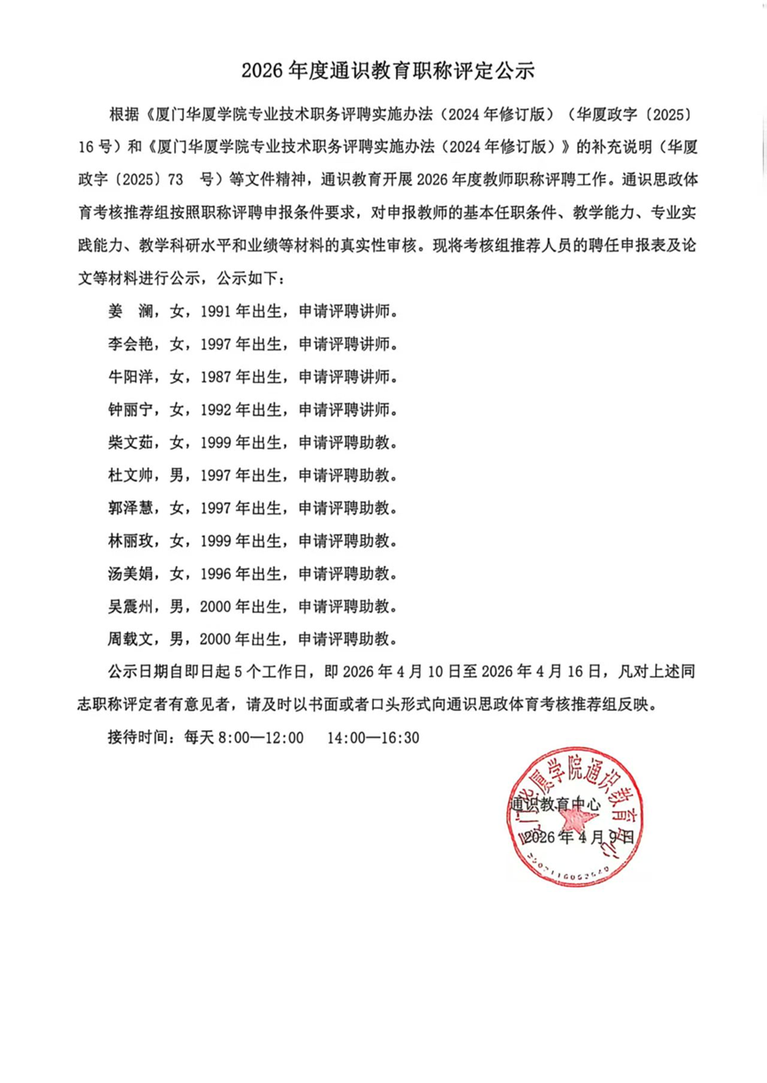 2026年度通识教育职称评定公示