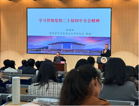 为深入学习贯彻党的二十届四中全会精神,准确把握“十五五”时期经济社会发展的核心要义,12月9日下午,通识教育中心党支部组织全体党员积极参与学校组织的专题讲座,认真聆听莆田学院马克思主义学院院长俞国锋教授带来的《学习贯彻党的二十届四中全会精神》主题讲座。